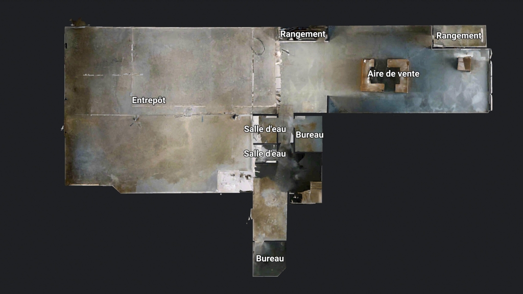 Le local comprend également des bureaux, situés au niveau supérieur, offrant un espace séparé pour l’administration, la gestion ou le travail d’équipe. Deux salles d’eau ainsi que des espaces de rangement sont intégrés, optimisant la fonctionnalité globale.