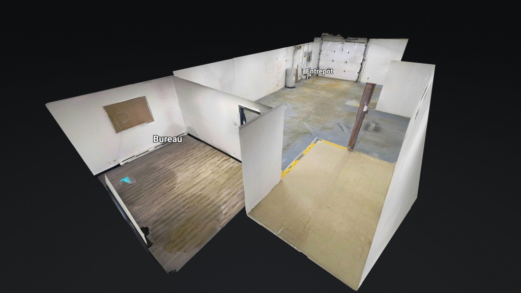 D’une superficie d’environ 1 316 p.c., le local se compose d’une petite section avant aménagée en bureau, parfaite pour l’administration ou l’accueil, ainsi que d’un entrepôt à l’arrière. L’espace d’entreposage est accessible par une porte de garage, facilitant les opérations de chargement, de déchargement et la logistique quotidienne.