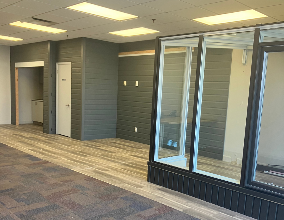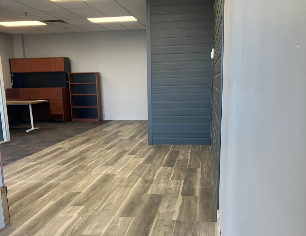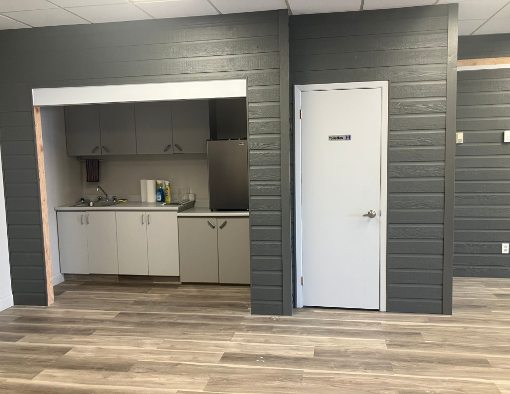 Le local comprend une salle de bain, une cuisinette et deux bureaux fermés séparés par un muret de verre. L’espace est lumineux et fonctionnel, idéal pour bureaux professionnels, services ou petite entreprise.