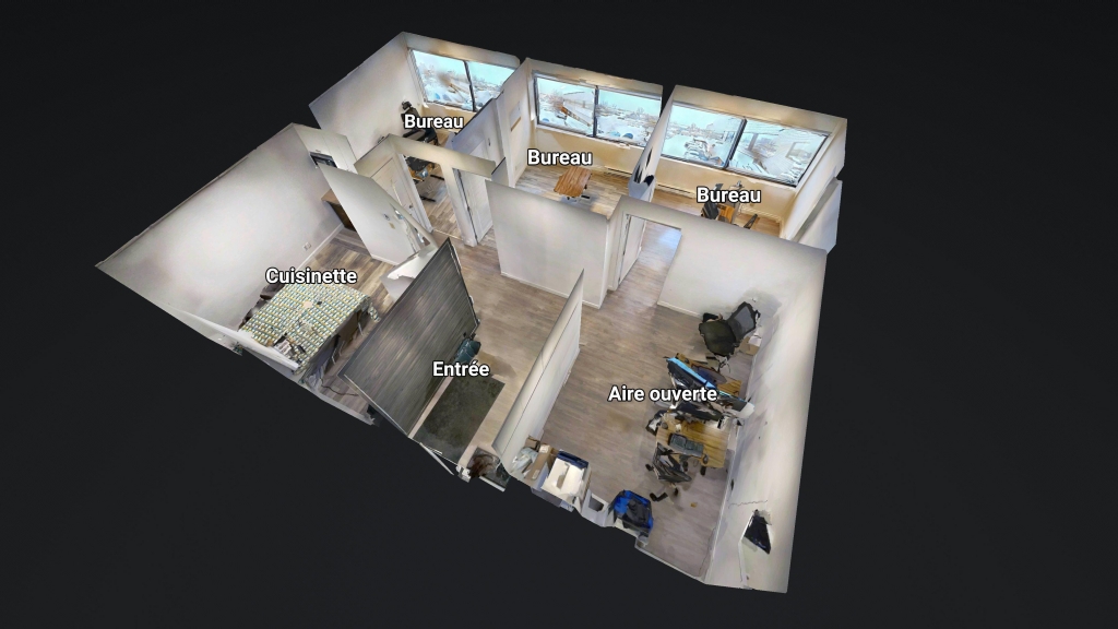 Situé au 2e étage de l’immeuble, le local 240 propose un aménagement fonctionnel et complet : trois bureaux fermés, une aire ouverte polyvalente, une cuisinette, une entrée dédiée ainsi qu’un accès direct aux espaces partagés de l’immeuble. Le bail en vigueur se termine le 30 septembre 2027, offrant ainsi une stabilité appréciable pour un nouveau locataire. Cette sous-location ou cession de bail représente une occasion idéale pour les professionnels, PME, professions libérales ou équipes en croissance.