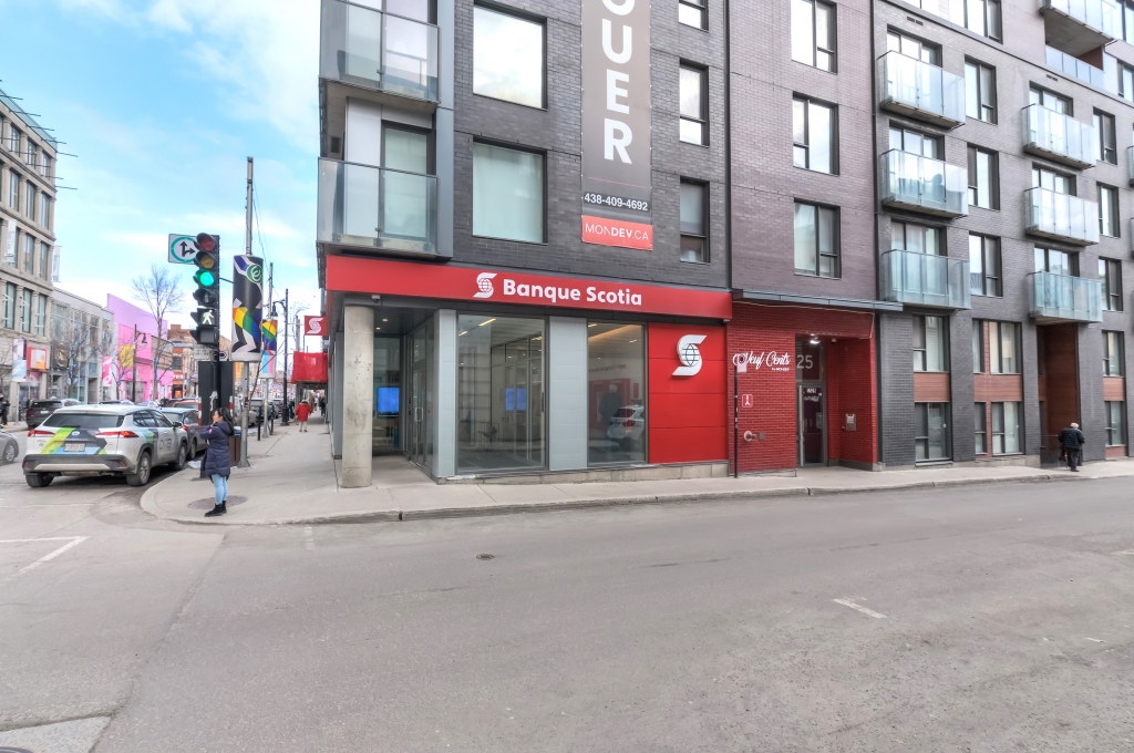 Cet espace commercial offre une façade entièrement vitrée sur deux côtes avec fenestration pleine hauteur, un accès direct à plus de 150 locataires résidentiels.