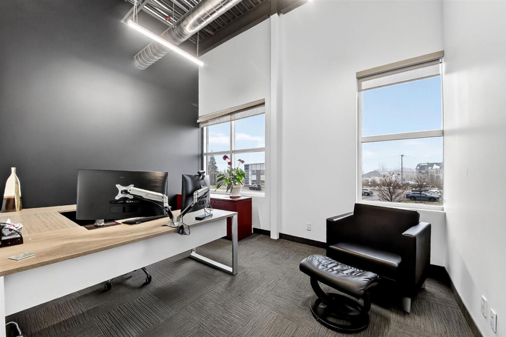 Sous-location d'un espace bureau de +/- 1 632 pi². Comprend 3 grands bureaux fermés, une grande salle de conférence, un coin cuisine et une salle de bain. Disponible le 1er mars 2026 jusqu'au 31 juillet 2027, avec possibilité de prolonger le bail. Plafond 100% ouvert. Très belle bâtisse. Facile d'accès, à proximité des grands axes routiers. Quatre espaces de stationnement réservés. Énergie incluse.