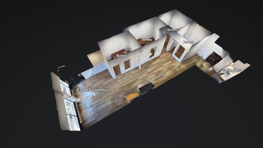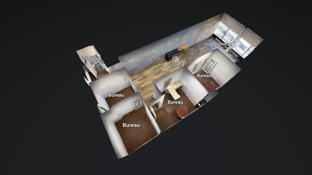 D’une superficie d’environ 1 180 p.c., l’espace, qui est en rez-de-chaussée, comprend quatre bureaux fermés, une salle commune spacieuse, ainsi qu’une salle d’eau. L’aménagement sobre et efficace favorise la productivité dans un cadre à la fois convivial et professionnel.