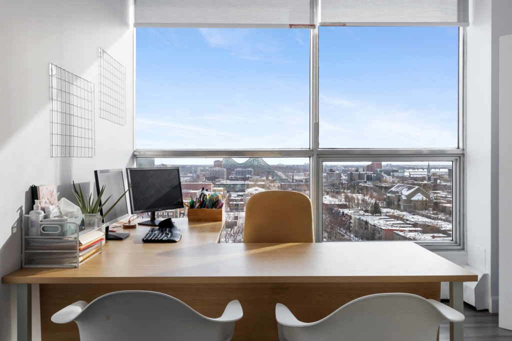 The suite boasts remarkable views, including those of the Jacques-Cartier and Champlain Bridges.