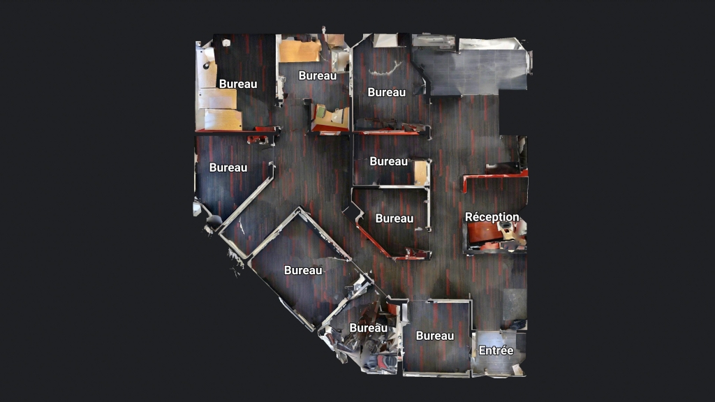 Le local est situé au rez-de-chaussée et se compose de neuf bureaux fermés, d’un espace de réception, ainsi que de corridors bien définis facilitant l’accès à chaque bureau. L’aménagement favorise le travail individuel, la confidentialité ainsi que l’efficacité opérationnelle.