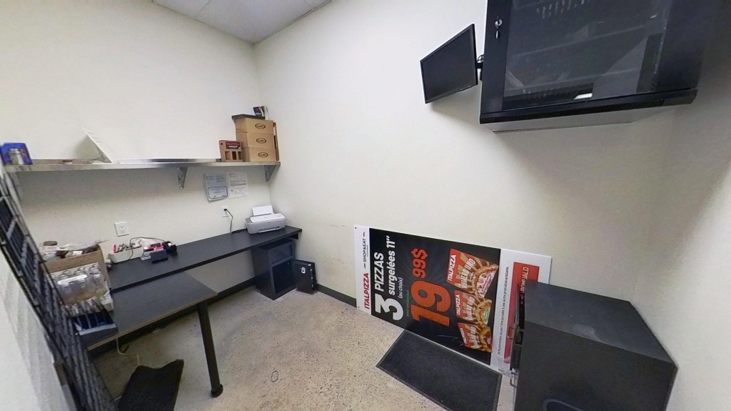 D’une superficie d’environ 2580 p.c., le local se compose d’une grande aire ouverte actuellement aménagée en zone de vente, d’un bureau fermé, de plusieurs espaces d’entreposage à l’arrière, ainsi que d’une salle de bain. La configuration permet une séparation efficace entre les zones publiques et les espaces opérationnels, tout en offrant une excellente flexibilité d’aménagement selon les besoins du futur occupant.