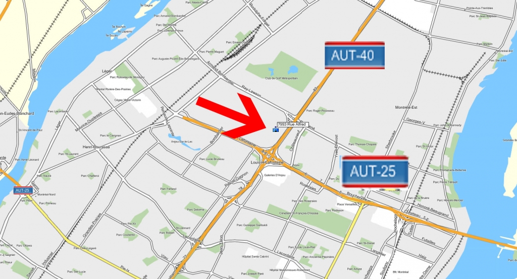 Commercial/industrial space, suitable for use as a warehouse. Located in Anjou on Alfred Street (H1J 1J3) with 2,175 sq. ft. of warehouse space and 1,250 sq. ft. of air-conditioned office space. Ceiling height is 19 feet. 600-volt, 100-amp electrical service. 8' x 8' garage doors with a loading dock. Separate office entrance. Two-story office space including a break room on the ground floor. Two restrooms. Sought-after location at the junction of Highways 40 and 25. Ideal for an equipment manufacturing or repair shop, distribution center, machine shop, or wholesale business.