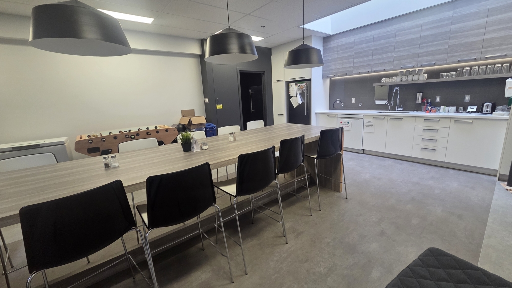 L’espace inclut une grande salle de conférences, plusieurs zones de travail 5×5, une salle de pause conviviale et un espace de rangement. Son concept aéré et organisé favorise la productivité et le travail d’équipe.