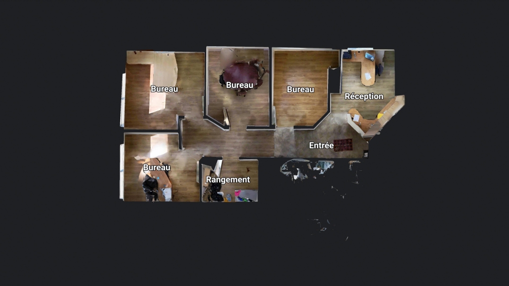 Le local comprend 4 bureaux fermés, un espace de rangement pratique, ainsi qu’une réception permettant d’accueillir la clientèle dans un environnement professionnel et bien organisé.