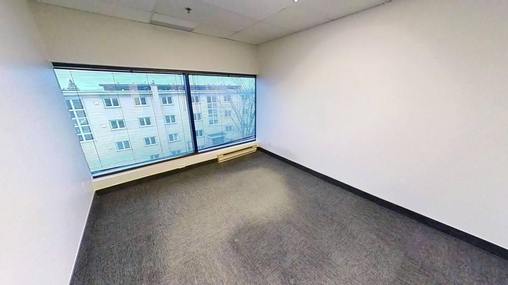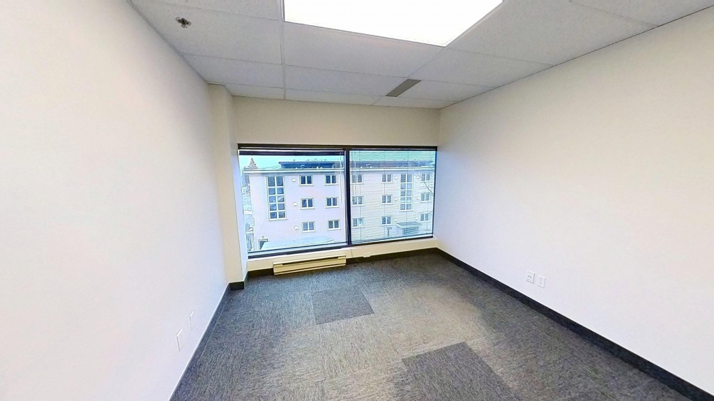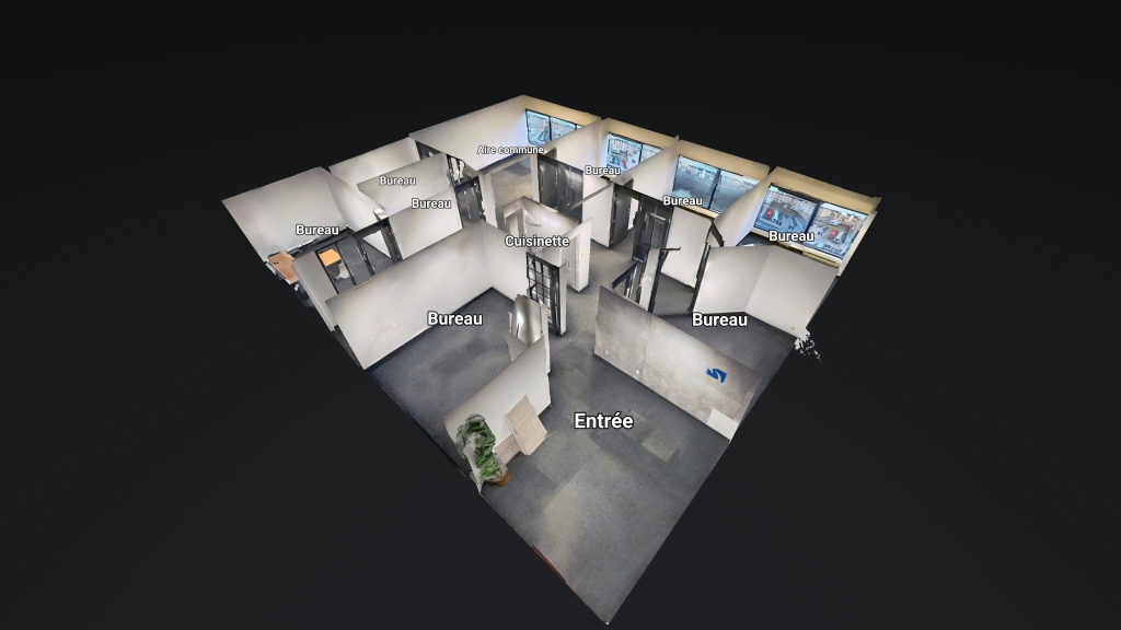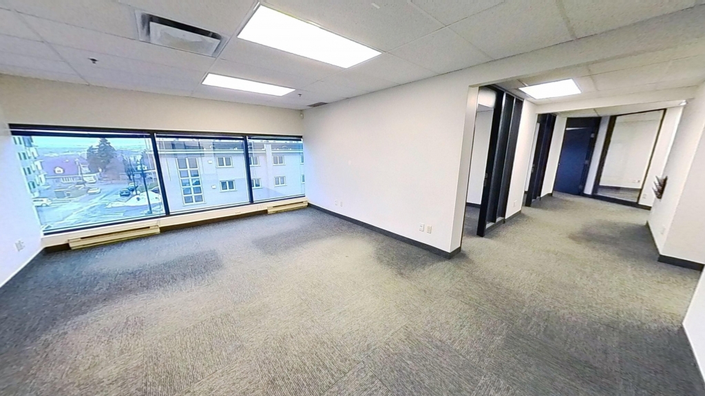 D’une superficie d’environ 2 120 p.c., le local se compose d’une grande aire commune, de six bureaux fermés, d’une cuisinette, ainsi que d’un espace d’accueil à l’entrée. L’aménagement favorise la fluidité des déplacements et le confort des occupants, tout en offrant une très belle luminosité naturelle grâce aux immenses fenêtres.
