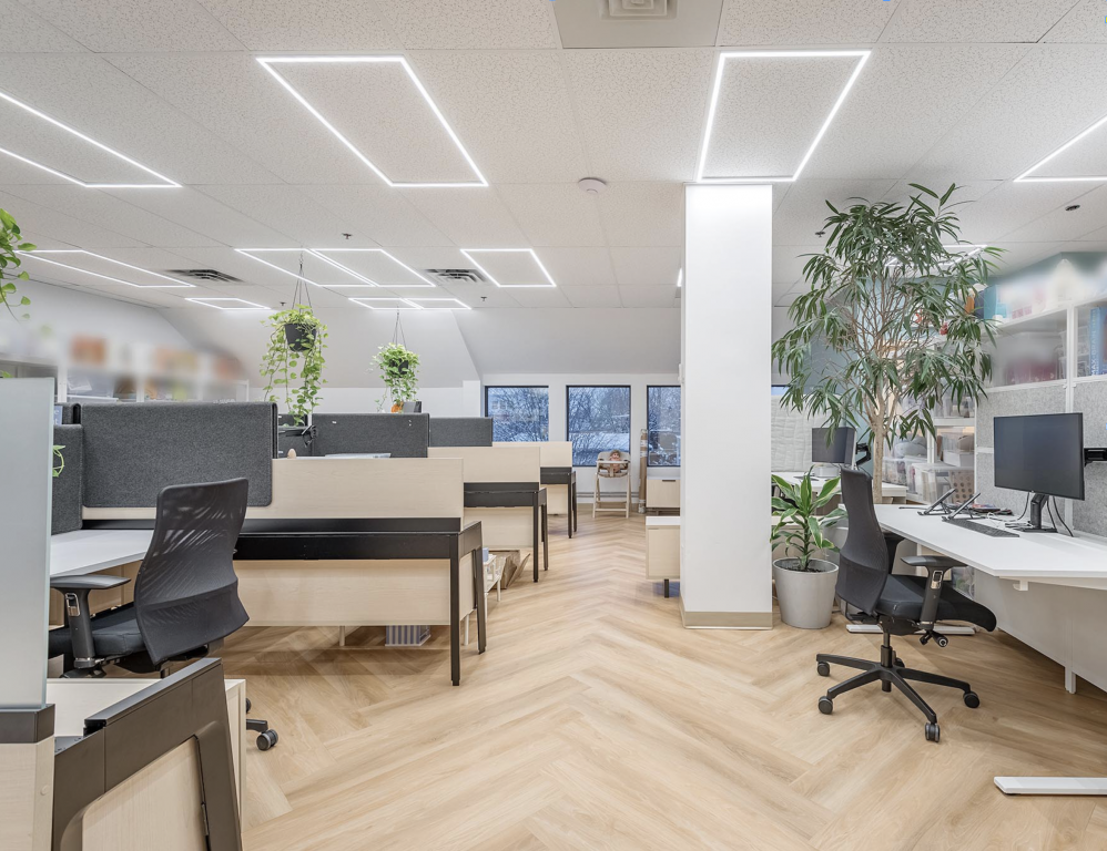 La suite 300 occupe l’intégralité du troisième étage, offrant un plateau complet d’environ 6 395 pi² locatifs.