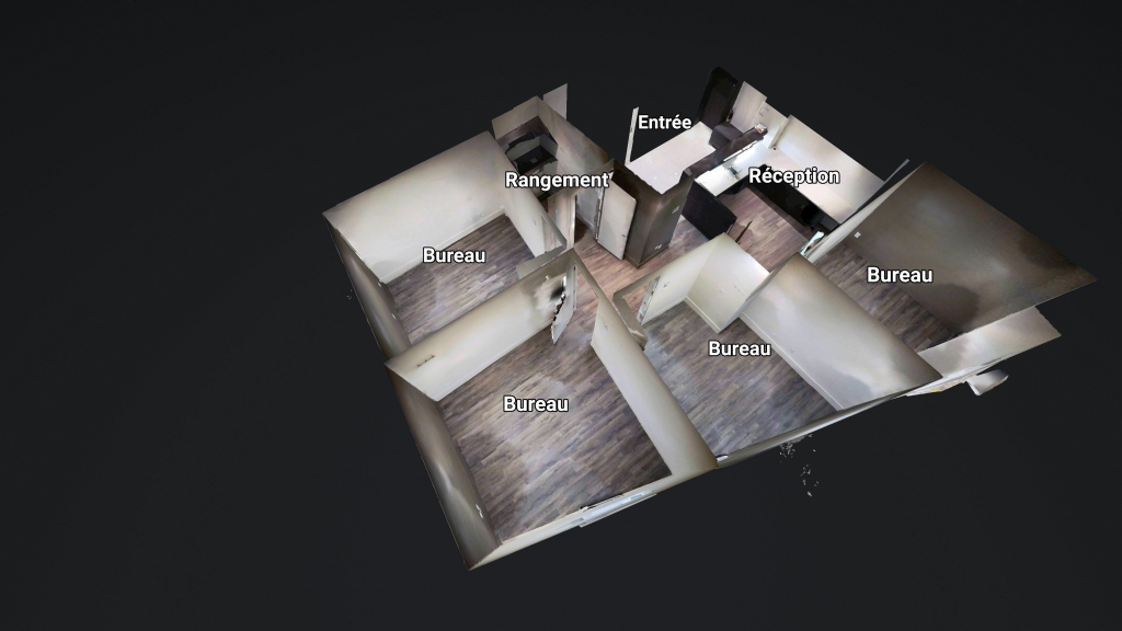 Le local comprend une réception lumineuse, quatre bureaux fermés adaptés pour la consultation ou le travail individuel, ainsi qu’une petite salle de rangement pratique pour l’organisation du matériel. L’espace a été entretenu avec soin et présente une finition sobre et moderne, convenant à divers types de services professionnels ou médicaux.