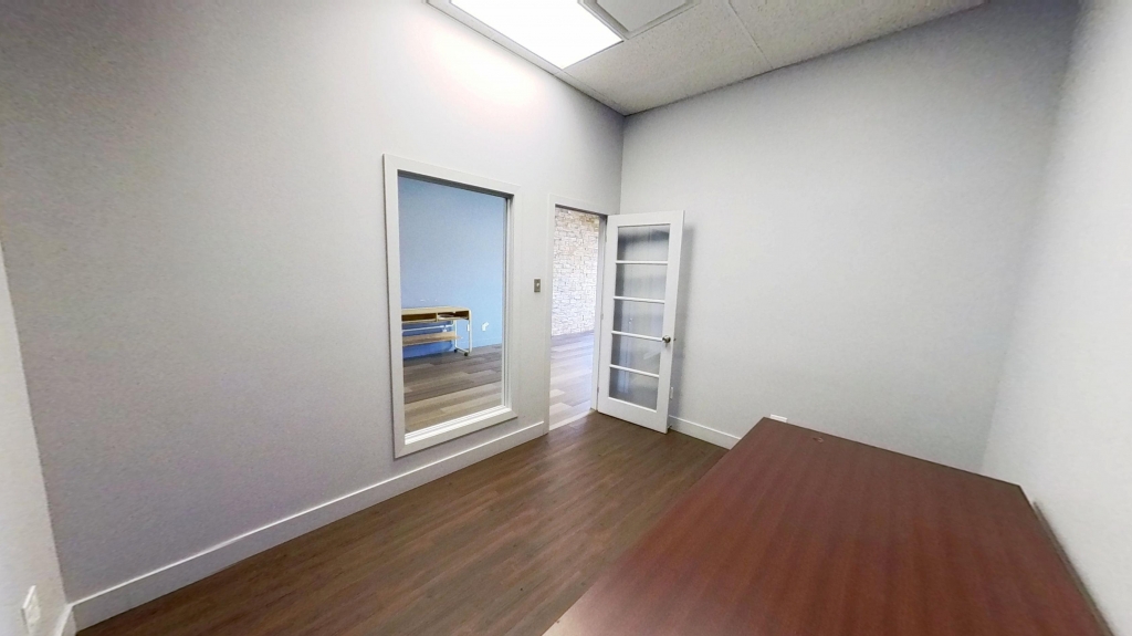 D’une superficie d’environ 1 180 p.c., l’espace, qui est en rez-de-chaussée, comprend quatre bureaux fermés, une salle commune spacieuse, ainsi qu’une salle d’eau. L’aménagement sobre et efficace favorise la productivité dans un cadre à la fois convivial et professionnel.