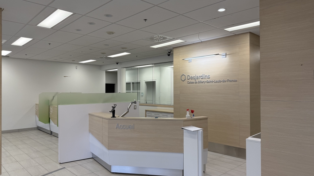 Occupé auparavant par une institution financière, le local bénéficie d’un aménagement pensé pour l’accueil du public, la sécurité et l’efficacité des opérations. On y retrouve un hall d’entrée spacieux, des bureaux fermés, des zones à aire ouverte modulables et une salle de réunion. La fenestration abondante en façade assure une luminosité naturelle constante, tout en offrant une excellente visibilité sur l’un des axes les plus passants de la ville.
