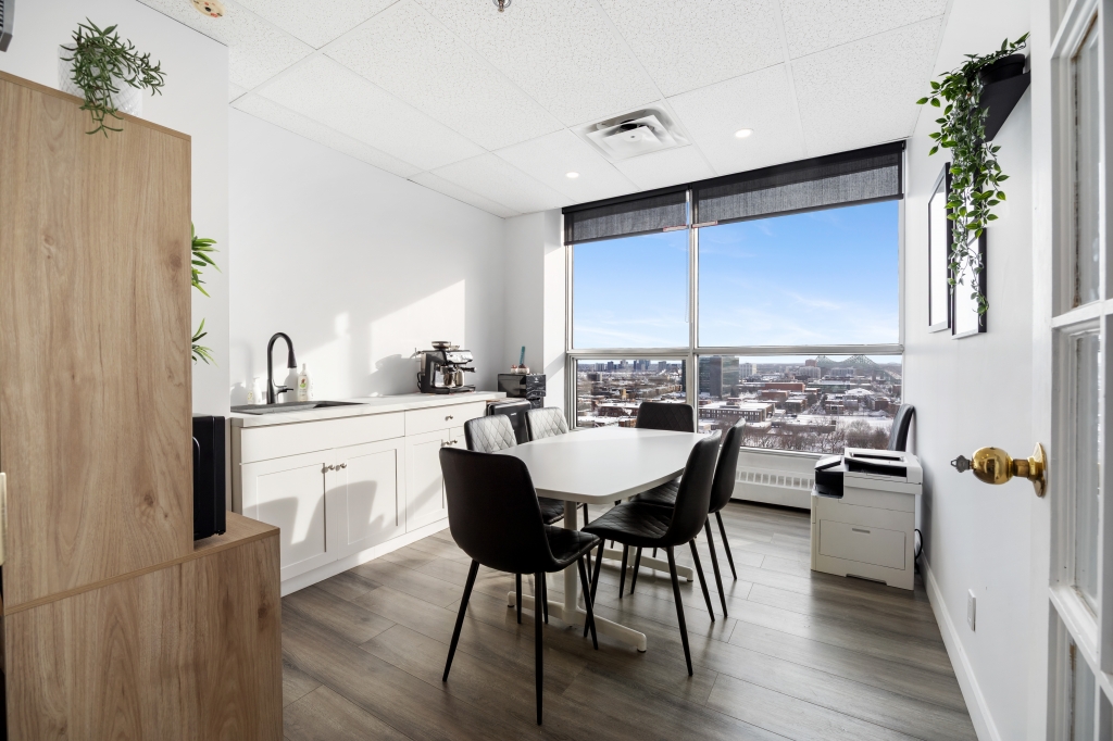 Suite 1011, located on the 10th floor of the building, has a gross area of ​​approximately 860 sq. ft. This suite offers three (3) private offices, a kitchenette with a dining area, a reception area, and a waiting room.